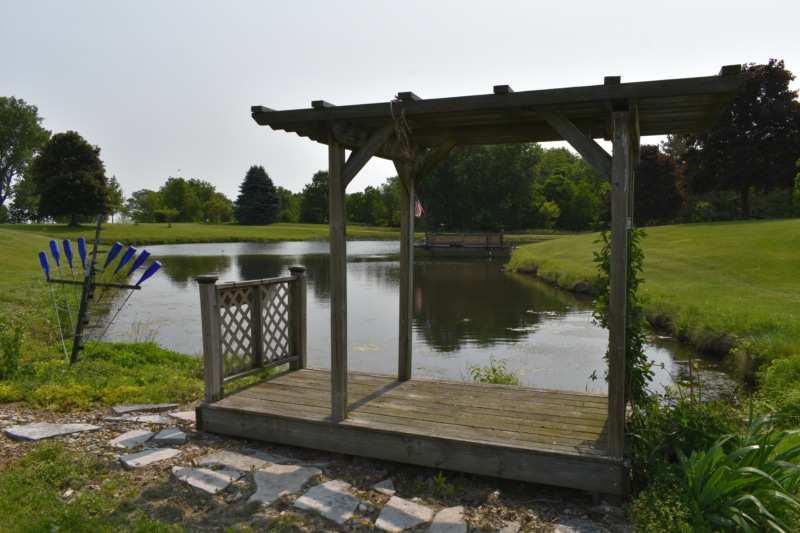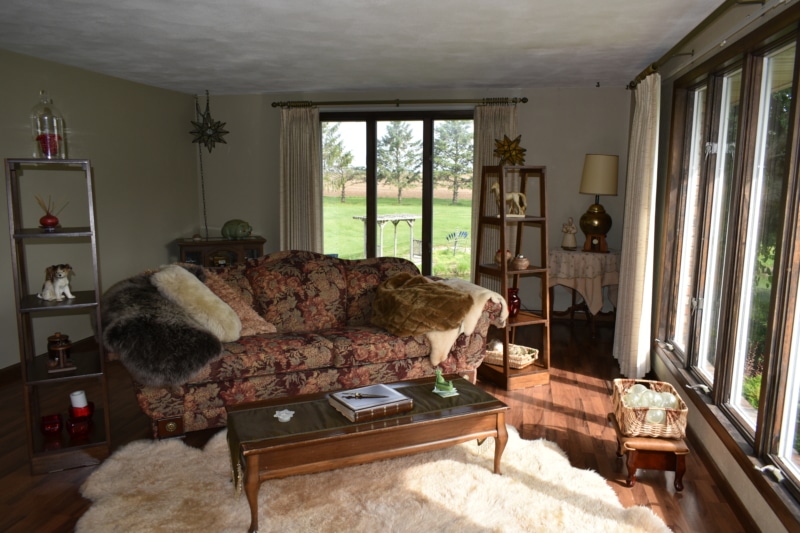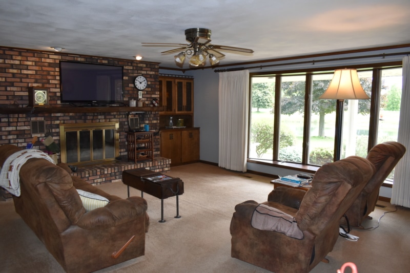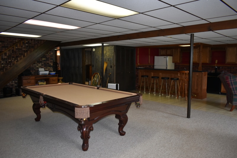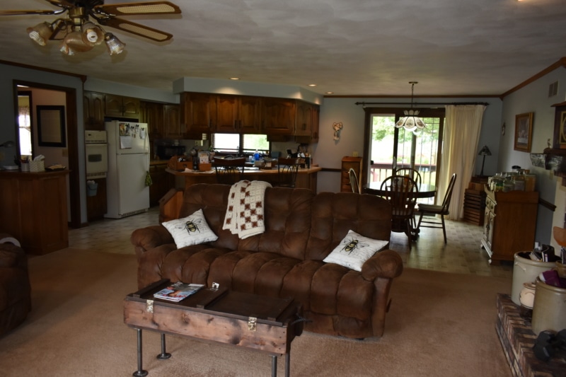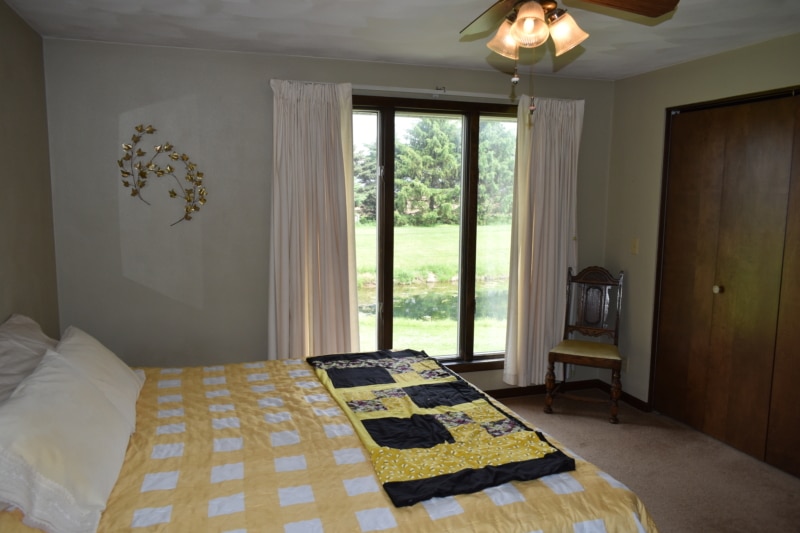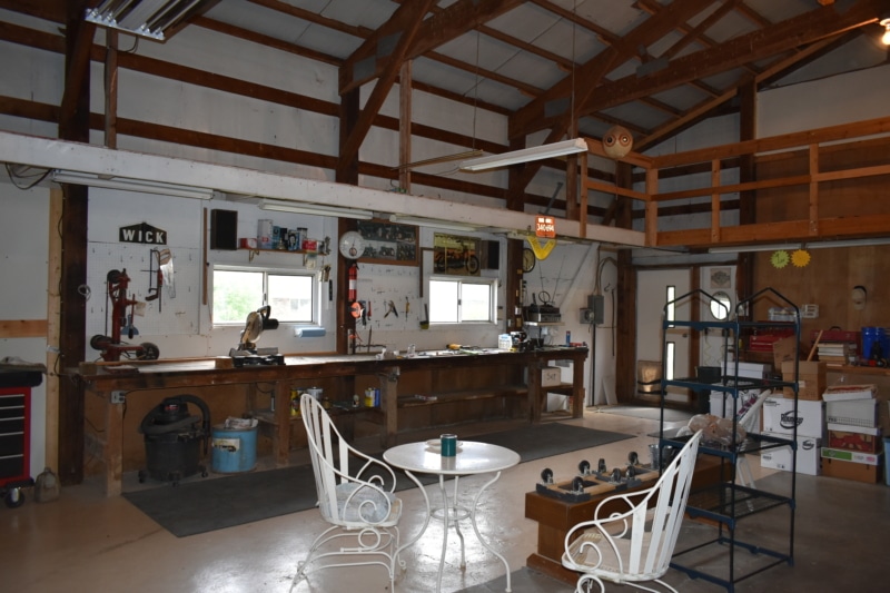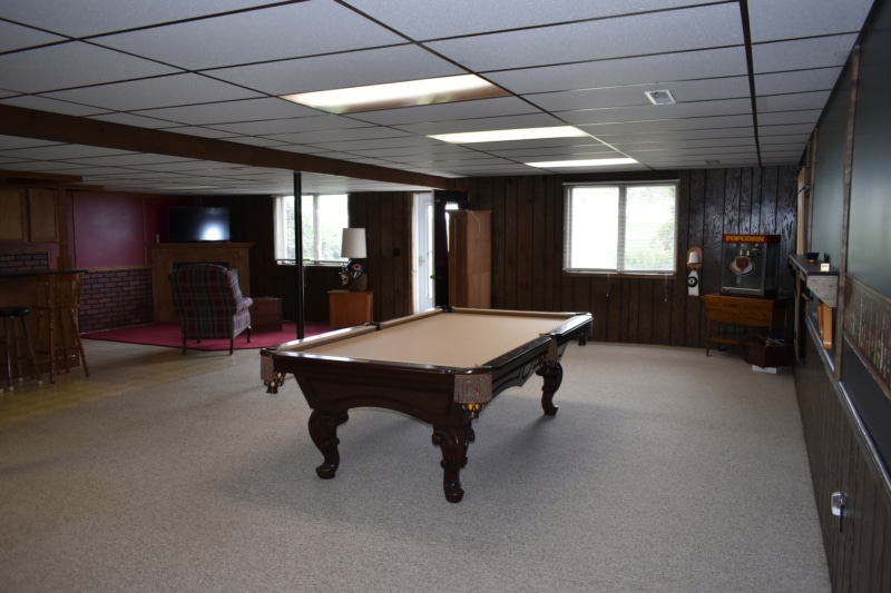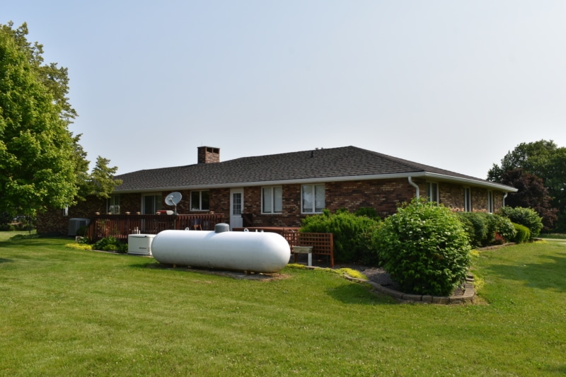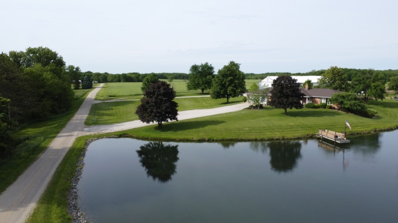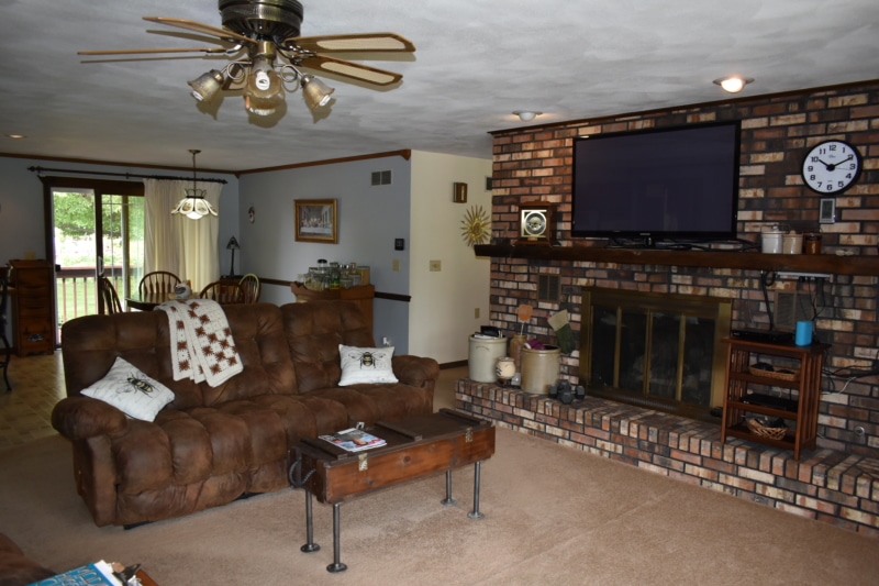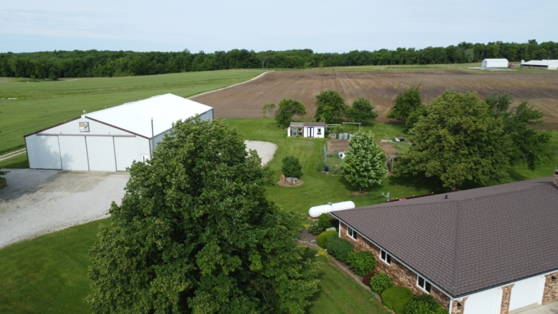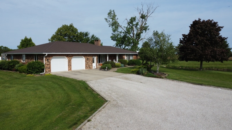 Extremely hard to find brick ranch country home with pond, huge 54×98 outbuilding with heated shop & surrounding timber full of wildlife! The house has an open floor plan with abundant windows & fireplace on main floor, finished walk-out basement with wet bar & second fireplace with direct access to garage, whole house generator, huge main floor laundry/utility room, master suite has beautiful view of pond. Heated shop has second floor with motorized lift to it! High end stone coated metal roof on house new in 2021 has 50 year warranty. Abundant fruit trees & garden area. Located on a dead end road with little traffic! New furnace in 2025. Machine shed roof painted in 2023. Pool table stays.
